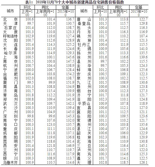 【斯多克】讯:一、房价:2018年11月份一线城市商品住宅销售价格有涨有跌,二三线城市涨幅稳定
