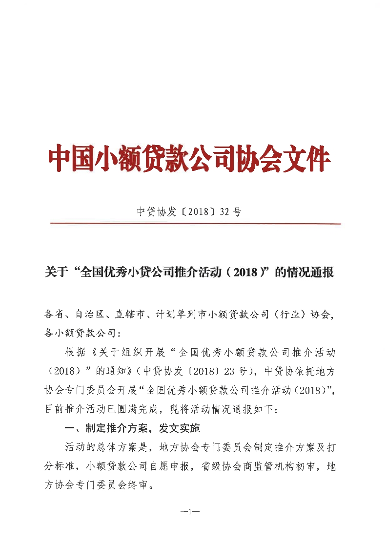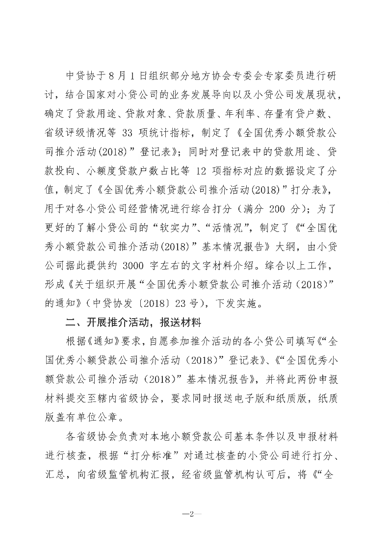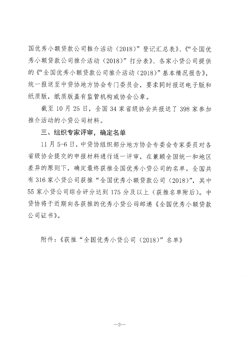 附:中贷协《关于“全国优秀小贷公司推介活动(2018)的情况通报”》