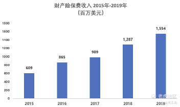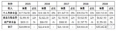 前进保险保费收入结构,2015年-2019年,数据来源:前进保险公司年报2015-2019年