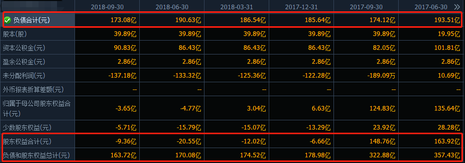 而最严重的债务问题至今仍无法得到解决。据乐视网资产负债表显示,2018年第三季度共计负债173.08亿元,而公司总资产为163.72亿元,股东权益-9.36亿元。很明显,乐视网现在明显是资不抵债,股东权益都为负数了,换句话说,乐视网目前已处于价值为负的状态。
