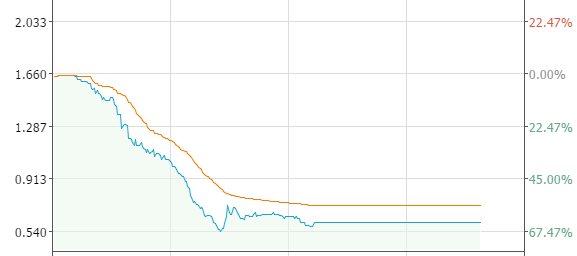 第一天暴跌63.86%,第二个交易日继续暴跌21.7%,由每股1.650港元下跌至0.470港元,如果你觉得还不过瘾,那么看看下图它日线的画风,好似一把长长的弯刀,刀口却锋利无比。