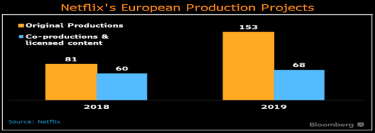 奈飞表示2018预计在欧洲的原创节目和联合制作的节目中将花费10亿美金的成本,这个花费几乎是2017年的两倍,目前奈飞在英国、巴黎等欧洲国家都有自己的办公室,并且和各国的税务部门达成协定只需要支付2%的营收税。随着支出的增加,奈飞加快速度的推出自己的原创影视作品,预计2019年将推出153部原创作品。