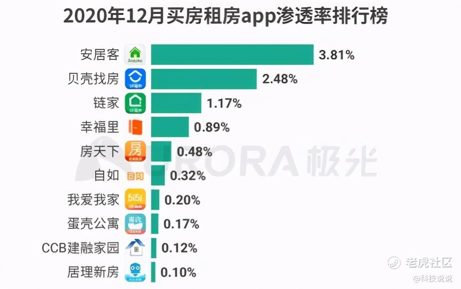 极光大数据发布的《2020年四季度极光移动互联网行业数据研究报告》显示,在2020年12月,安居客APP在房产平台领域始终维持领先的优势地位,其渗透率及用户时长分别是行业第二平台的1.5倍和3.8倍,领先同一领域的贝壳找房、链家等。