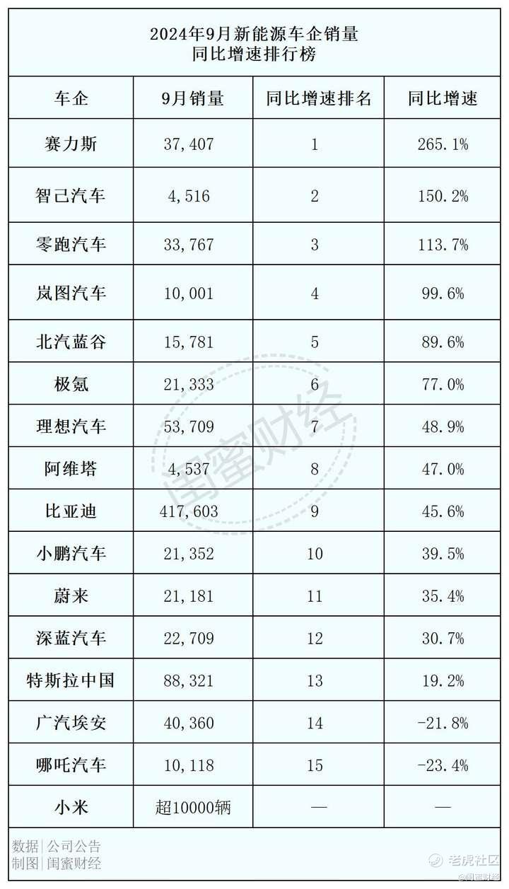 二是零跑汽车,9月销量33767辆,同比增长113.7%。不仅增速跑得快,单月销量也赶超了多家造车新势力。