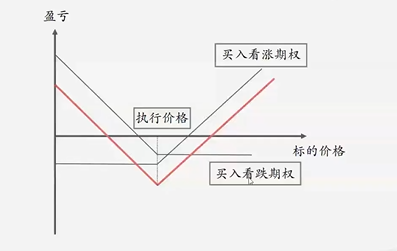而波动率策略也是一个常用的策略,比如做多波动率——跨式策略,买入看涨期权+买入相同执行价格、相同到期日的看跌期权,这个策略可以运用到我们预期银行波动率上升,。如下图所示: