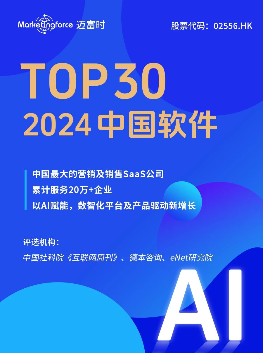 今日,中国社科院《互联网周刊》、德本咨询、eNet研究院联合重磅发布了《2024中国软件150强》榜单,Marketingforce迈富时(珍岛集团)位居前30名。Marketingforce已经连续四年入选该榜单,且排名逐年上升,彰显了公司在软件服务及技术创新方面的持续进步和突破。