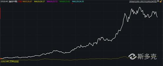 融创中国的股价,在2017年间翻了8倍。而他曾经怼过的王石呢,彼时不是在做红烧肉,就是应付宝万之争。同时期的万科股价,基本没动。