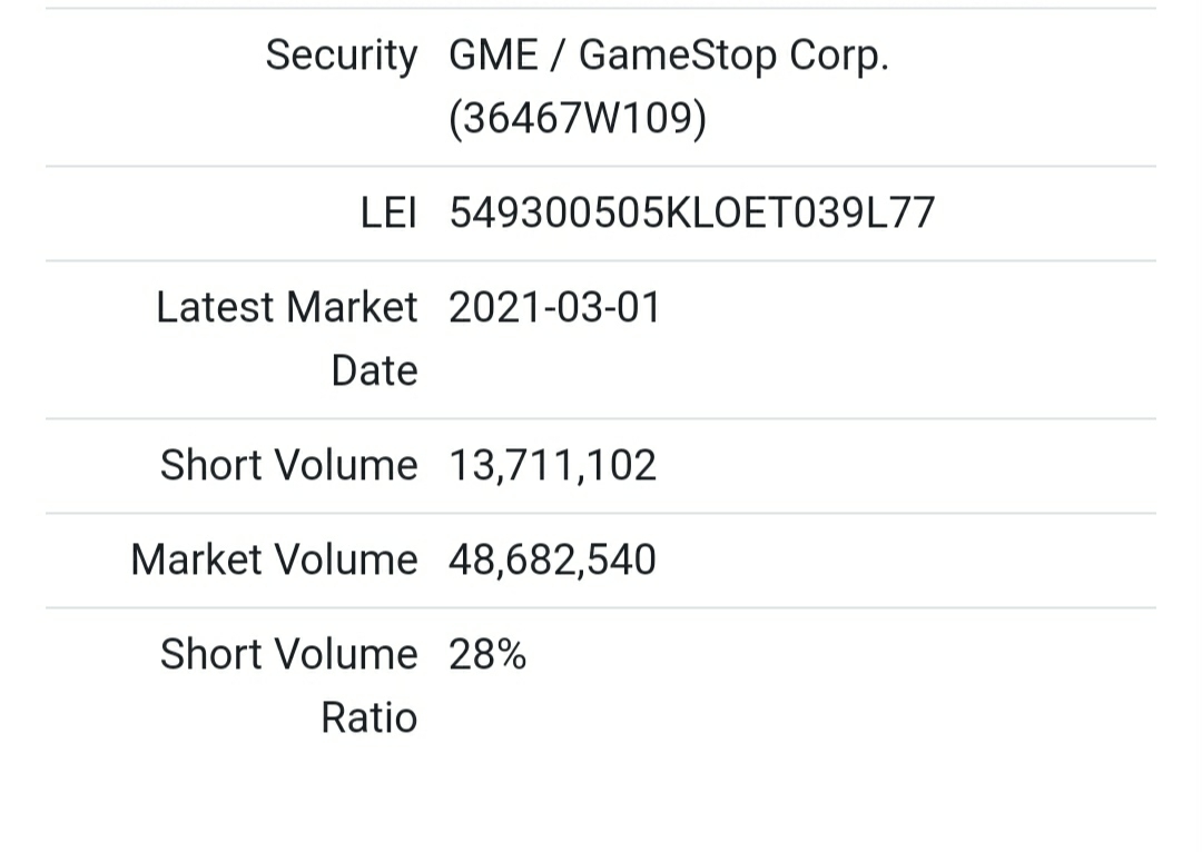 游戏驿站,目前被做空的股:13,711,102 空头平仓很多,估计昨晚没大涨很多!要是爆涨到800的话,空头将会损失上百亿,只要散户团结起来,每人都能分一块肉。散户做空损失无上限,做多盈利无上限,自己选择!$AMC院线(AMC)$$游戏驿站(GME)$$SOS Limited(SOS)$
