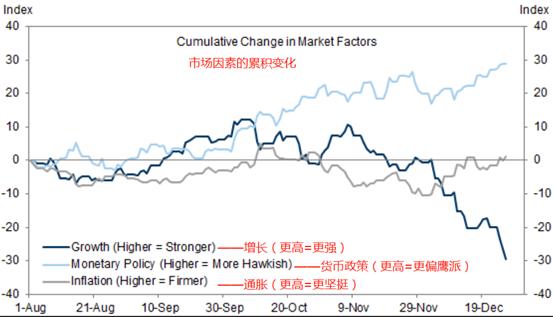 我们的全球CAI指数从一年前的5%下降到12月初的3.4%,在美国以外的大多数主要地区都出现了大幅下降。此外,我们的金融状况指数(FCI)大幅收紧,可能会拖累明年的增长。例如,美国FCI自10月初以来收紧了逾100个基点,如果情况持续下去,美国明年的经济增长可能会减少1个百分点。
