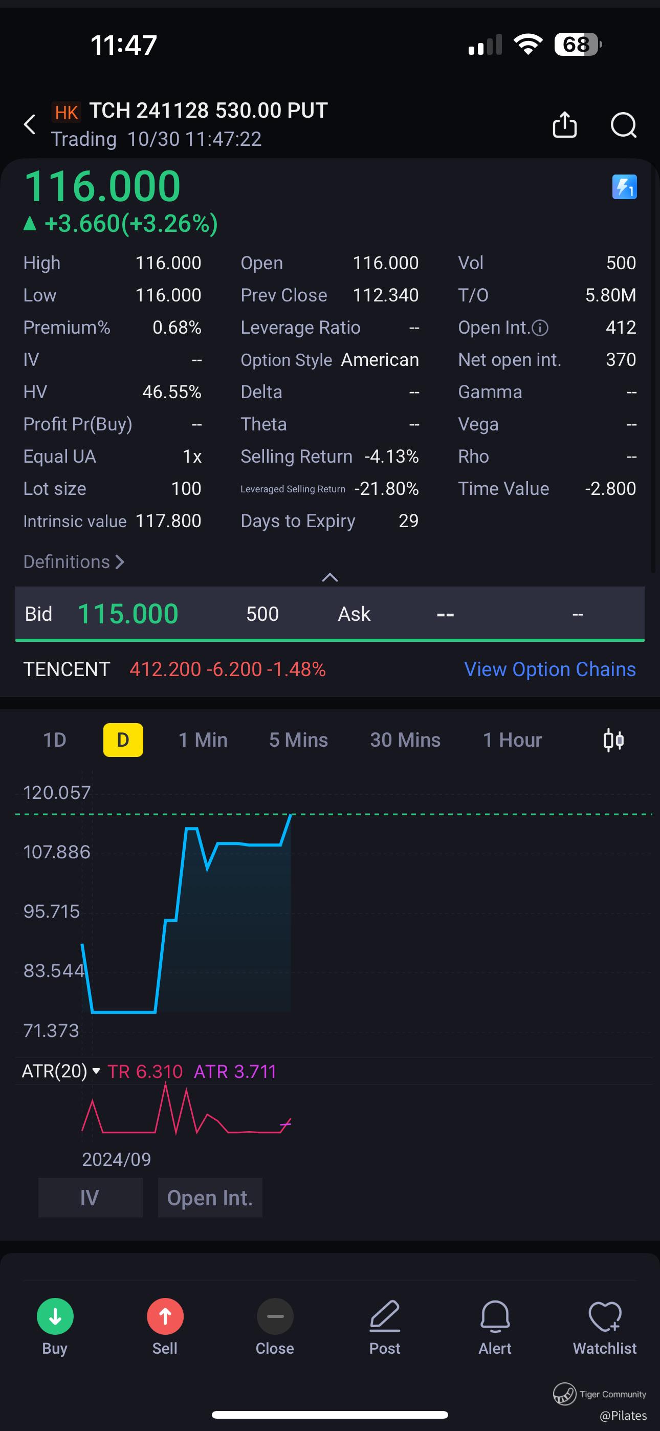 Wow this is pure madness. Someone just Bought 500contracts of $530 puts expiring 28/11/24 at 5.75million hkd. And still trying to buy 500 more. Are FI trying to shoot the price down? What's ur opinion .