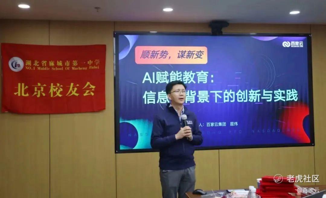 作为国内领先的一站式AI视频技术服务商,百家云汇聚多方人才,百家云副总裁屈伟就是毕业于麻城一中的优秀校友。作为校友会副会长,屈伟对到场嘉宾表达了热烈欢迎,并向各位与会嘉宾介绍了百家云,以「AI赋能教育:信息化背景下的创新与实践」为主题,与大家共同探讨AI技术伴随下的未来教育形态。