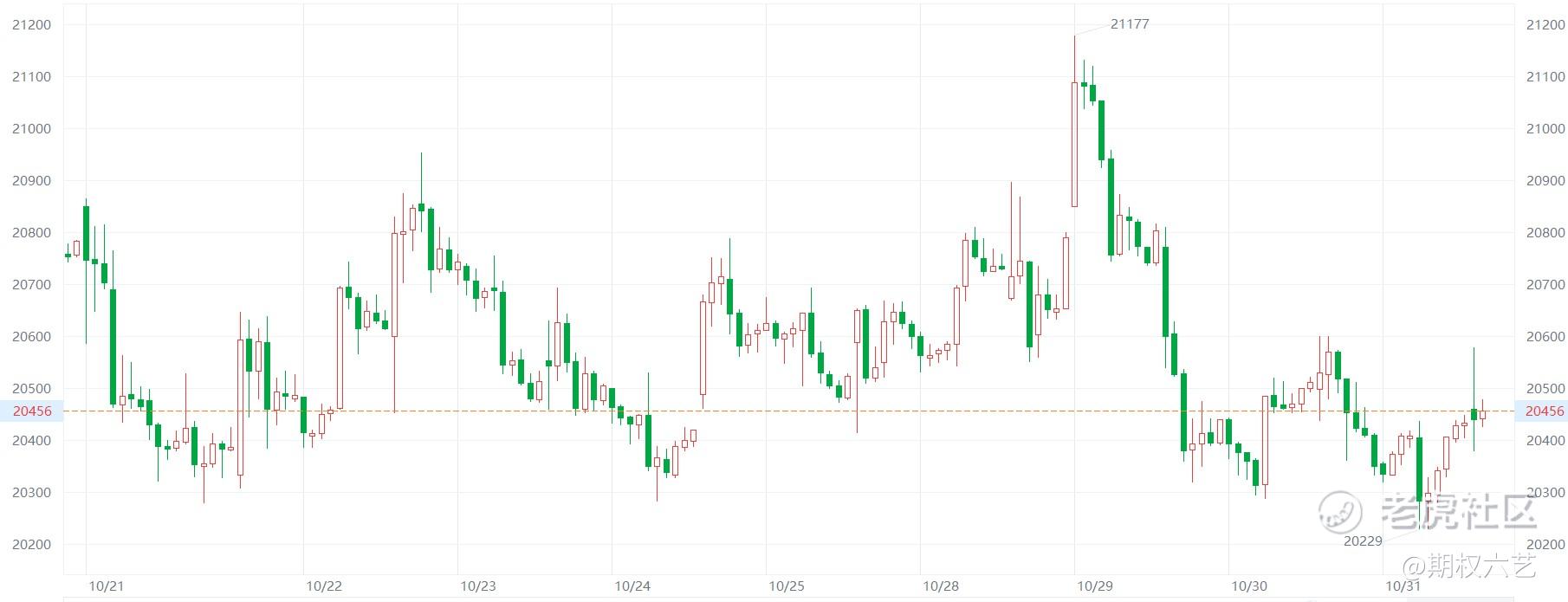 10月下半月的港股,21日起横行两周20900-20300间,周二夜盘短暂凸起可忽略。后者体现支撑力,这种托手近年熟悉不过,上下其手让港股活力四溅变无影。蹦极式反弹,下周似乎都期待再来一波。下周两大事件,会否让恒指再站上21200?32.5的波幅指数应为此而来。现货成交回至千五百亿,牛熊证慢慢累积,期权未平仓无起色。消息左右,非春江鸭可先知。余下俩月应于18800之上,再上23000需万万亿的刺激。11月阻力位21600,低位看2万整数关如何,下周尾会稍明朗。恒指期权金本周渐恢复,高昂退却炒家不待见。周双买本周亦小胜,周三/周四20300上下平仓。本周认沽期权位202put,至结算日都未触及。期权金高波幅不高为不利,平仓位需把握有利时机,这也是为何做双买而判研恒指走势,不为入场为离场,有道是会买不会卖为交易者短板。十月四周三胜一负,月初虽波动不俗,但非持续有利,上半月期权金昂贵,下半月波动低期权金不低。并非大波动双买就有利之说,理论需结合实践,说期权与做期权差远矣。双买有难度需谨慎,恒指与纳指QQQ皆是,认购+认沽期权金双边时间磨损需面对。 $恒生指数主连 2411(HSImain)$ $恒生指数(HSI)$ $纳指100ETF(QQQ)$