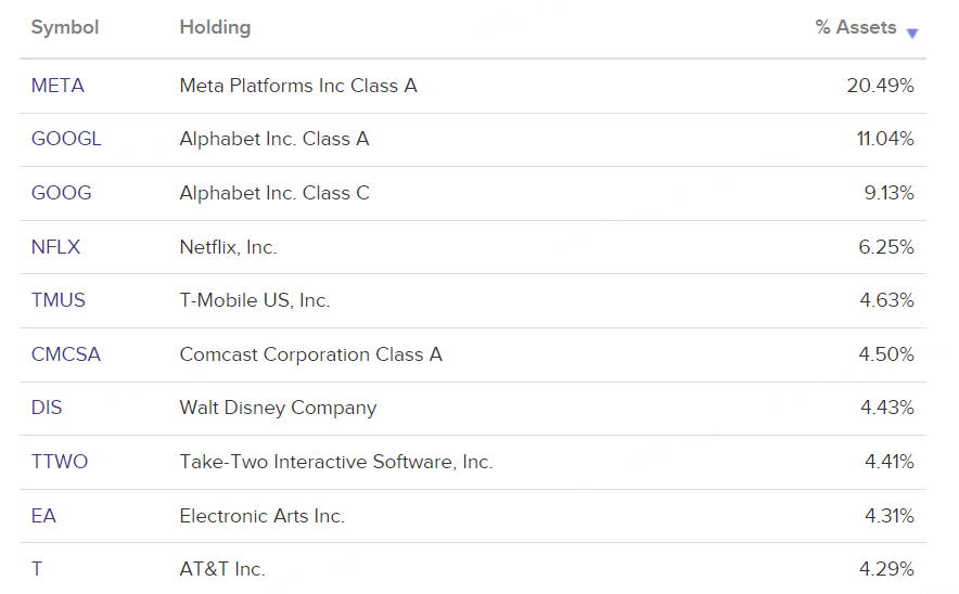 通信服务行业具有一定的防御性,特别是在市场波动较大的年份,投资者倾向于选择能够稳定增长的科技和通信服务公司。XLC中持有的公司往往具备规模效应和品牌忠诚度,能够在不同经济周期中保持业绩的相对稳定。此外,XLC的表现还得益于其投资组合的高度集中,使得它在整体经济不确定性中保持了较高的回报。