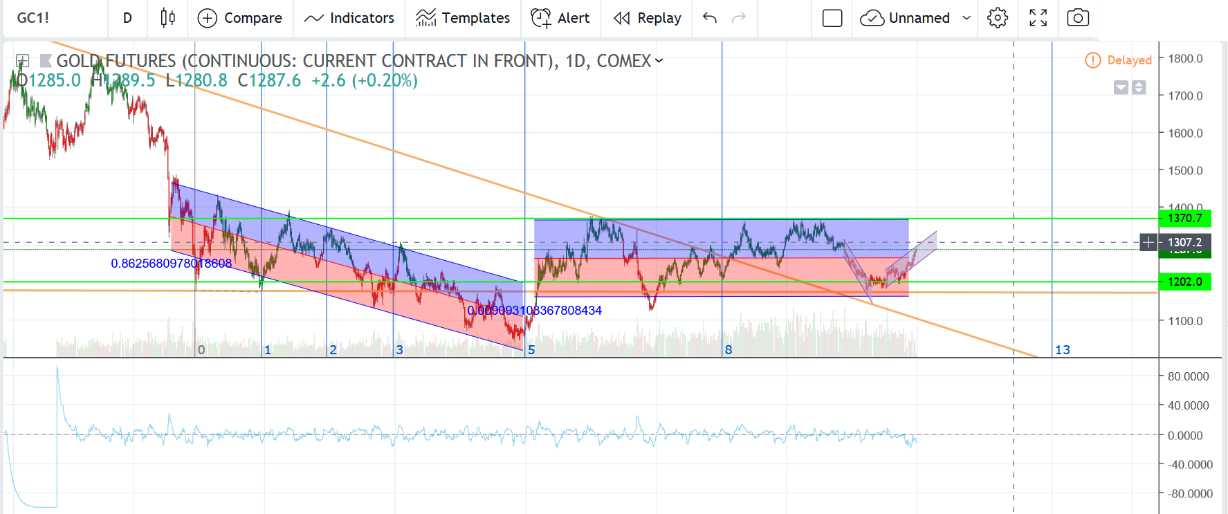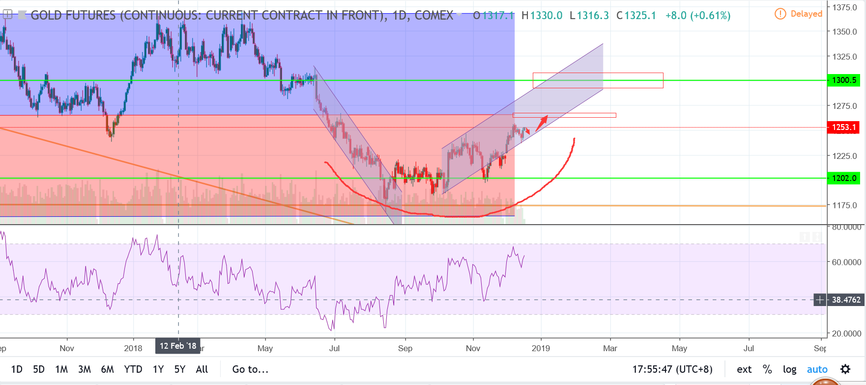 黄金期货大家都看到多少止盈?我看上方应该还有点空间,第一个位置是1300到1310一带,第二个位置是1360到1370一带。