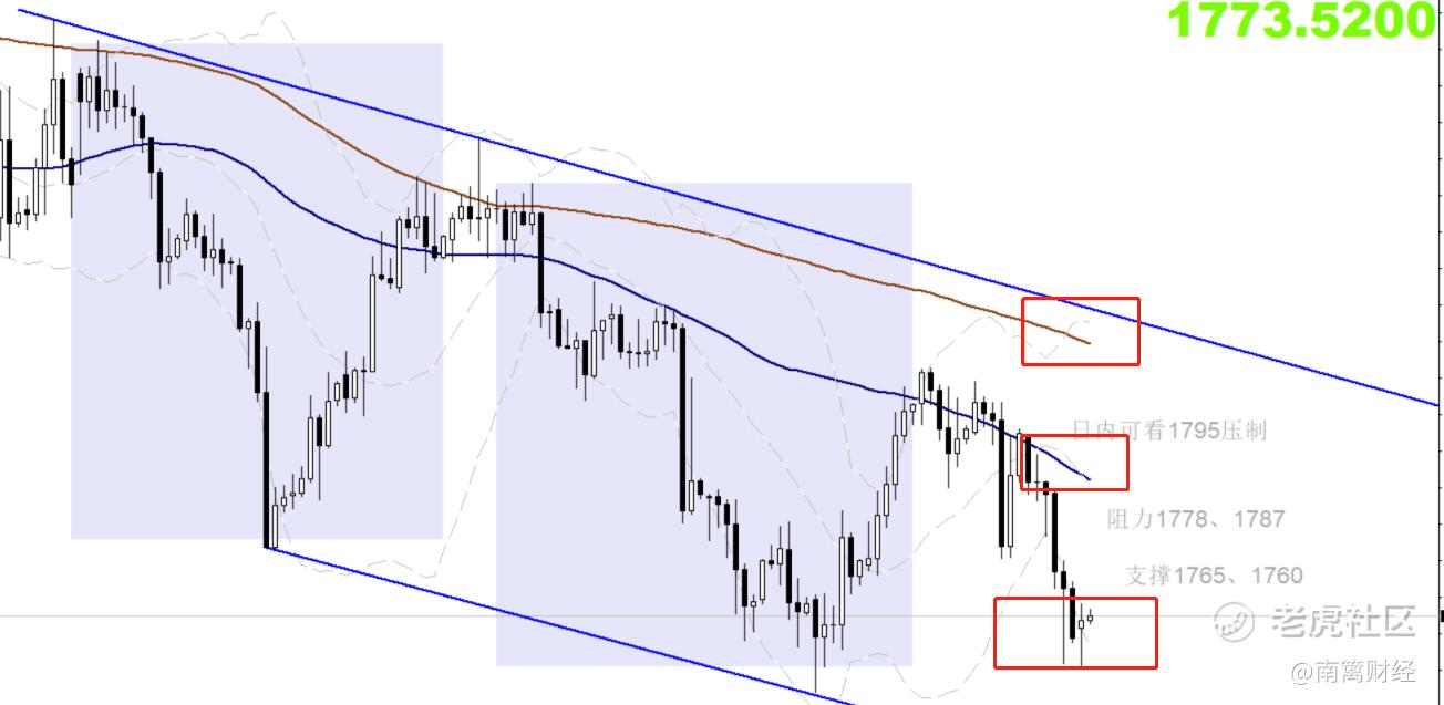 日内思路很简单,支撑1765、1760;阻力1778、1787。料将在1787进行承压下行。带好保护,准备踏浪!