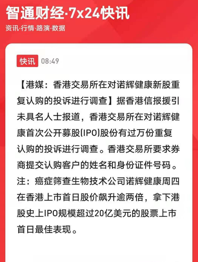 昨天传言港交所要求券商提交中签(或认购)客户的姓名和身份证号码,有人投诉诺辉健康的重复认购,一人多户的玩法可能要凉了~