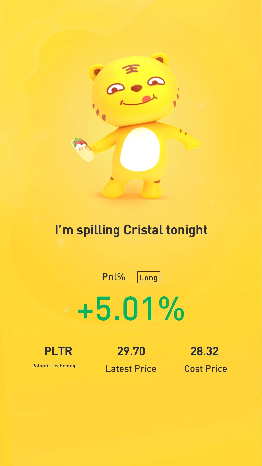 $Palantir Technologies Inc.(PLTR)$ Where is my rocket? ๐๐๐๐๐Just rebought today after selling and $29.70 last Friday. Yummy ๐