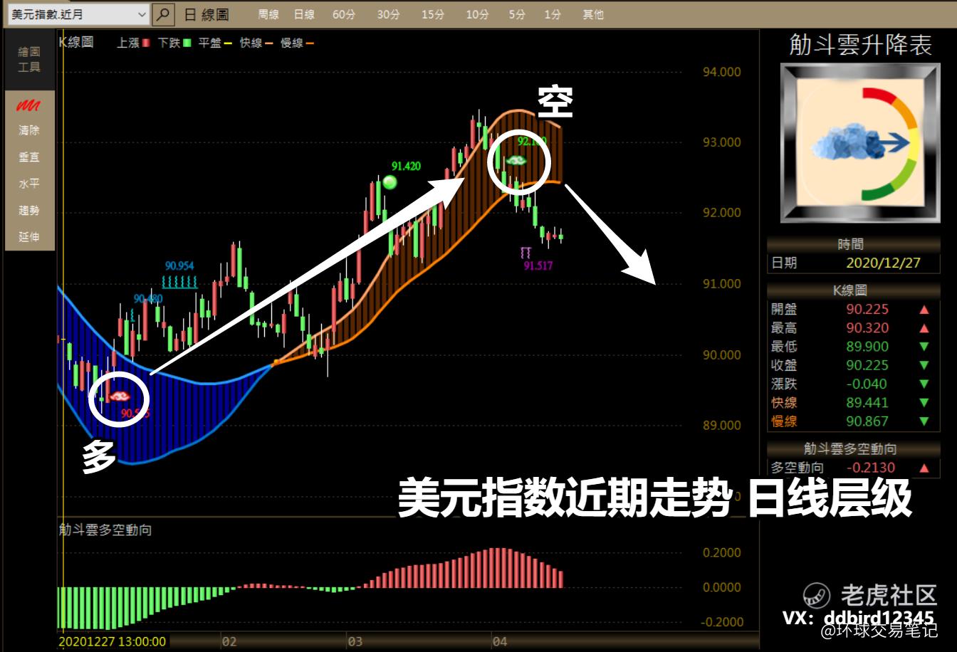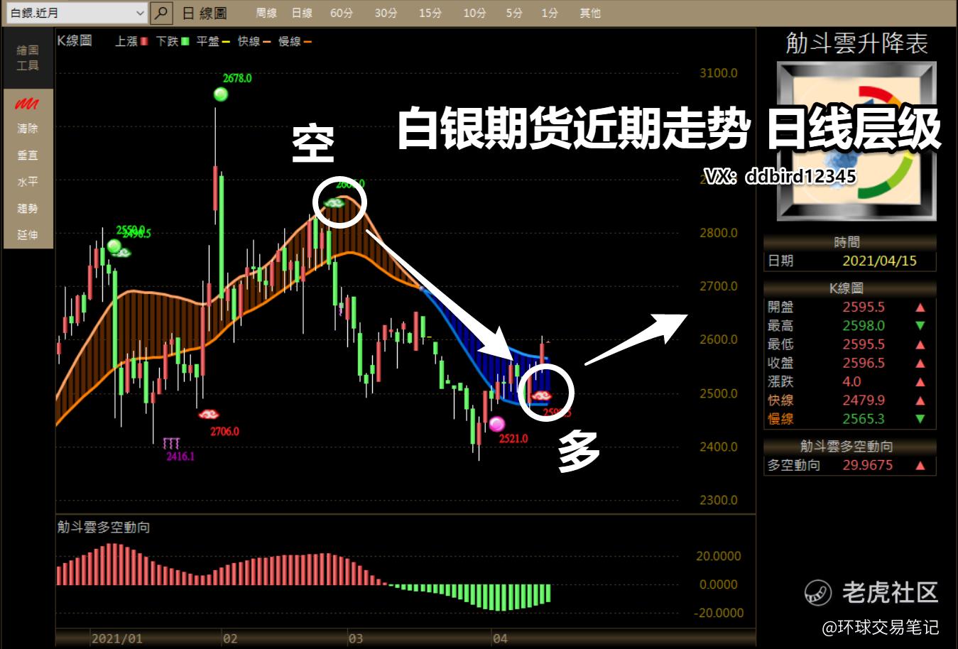 观察筋斗云白银日线层级表现,26美元是关键点位,若是白银价格突破26美元关键价位,则先前空头转多。