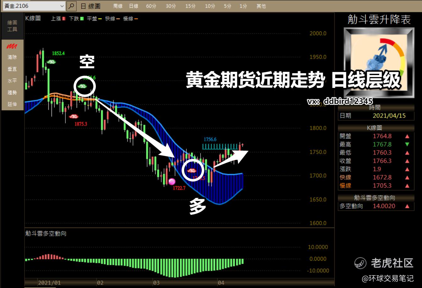 黄金走势抢先白银转多表现,筋斗云在三月份提示黄金转多。