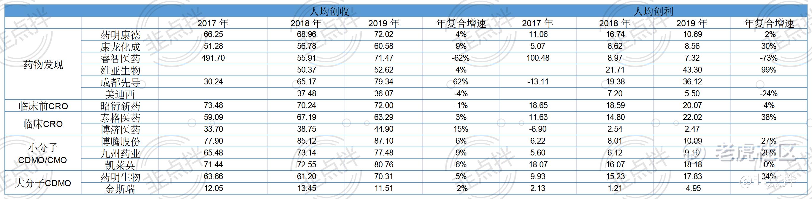 人效方面综合来看,表现较好的是:凯莱英、博腾股份、成都先导。不过,需要注意的是,⼈效不能代表综合实⼒,药明康德、康⻰化成所在的赛道尽管⼈效不⾼,但却占据流量和客户优势,属于产业链上的“流量⼊⼝型”赛道。