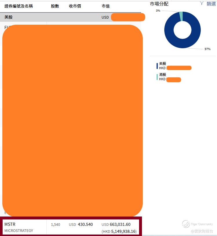 1. 个人钟意实币多过币股,但屋企仓系银行户口,买唔到币🧐,我于是用$MicroStrategy(MSTR)$代替。又由于此股大波,注码比例上少过自己币仓