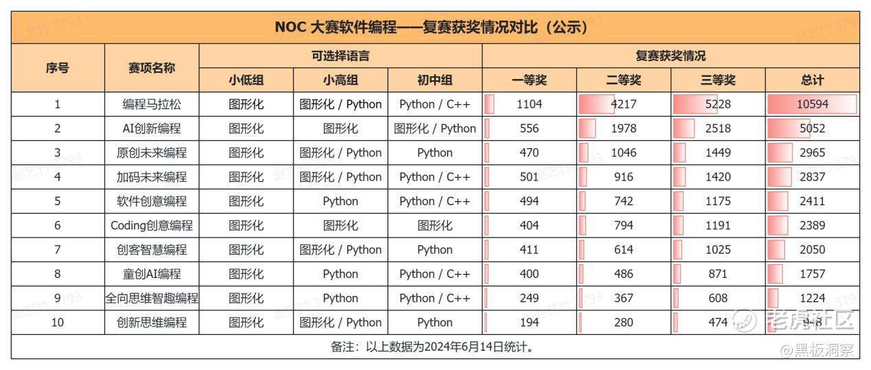 不仅如此,核桃编程在同为教育部竞赛白名单赛事的“全国中小学信息技术创新与实践大赛”(简称NOC大赛)中也取得了卓越成绩。NOC大赛由中国人工智能学会主办,是目前覆盖范围最广、影响力最大的中小学信息技术教育普及活动之一。