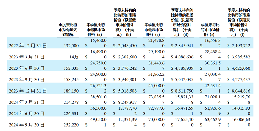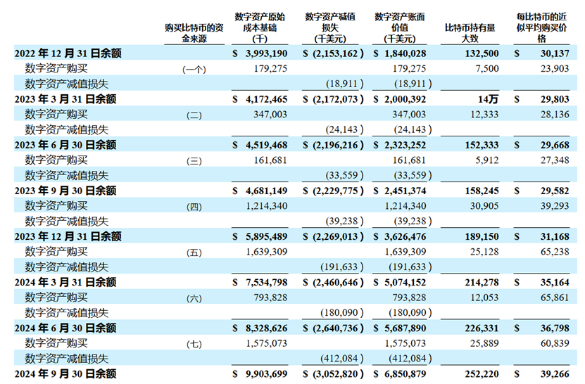 如果论比特币价格,2024年的比特币价格及涨幅远超2023年, 但2024年前三季度的数字资产减值损失却比2023年高许多。