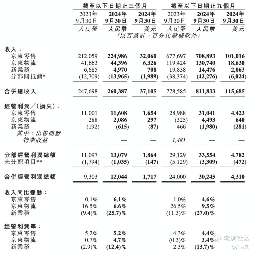 在研发开支方面,京东从2023年第三季度的人民币38亿元增加15.9%至2024年第三季度的人民币44亿元。研发开支占收入的百分比,由2023年的1.5%提高到2024年的1.7%。