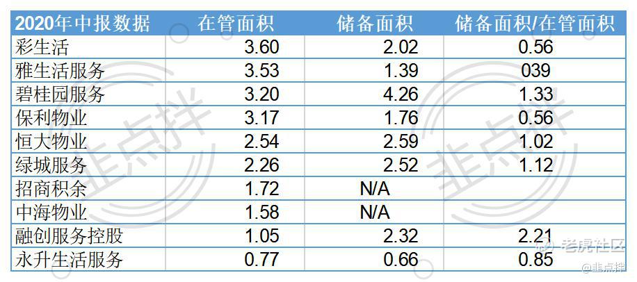 1) 物业公司储备管理⾯积、在管⾯积——物管公司⽬前的核⼼增⻓驱动来⾃在管⾯积增加,在管⾯积排名前三的为:彩⽣活、 雅⽣活服务、碧桂园服务。