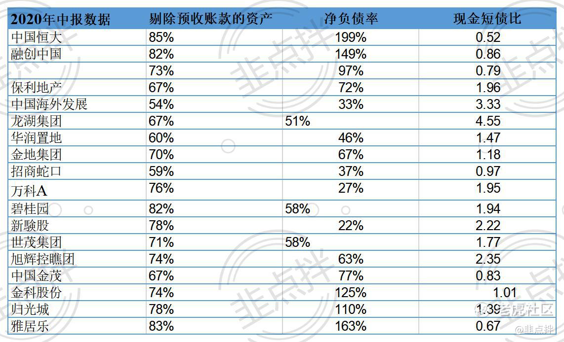 体量排名前5名为:${{84c2113453014e748f8aa86f45521c03}} ›${{3912d27b586d453fab6374b496c08881}} ›$万科A(000002)$›融创中国›保利地产;从周转效率看,排名前5名为:绿地控股›雅居乐集团›碧桂园›旭辉控股集团=世茂集团。其次,我们接着来看,⺟公司债务和潜在⻛险⽔平。为了限制开发商融资,央⾏和住建部推出融资新规,俗称“三条红线”,将于2021年1⽉1⽇起全⾏业推⾏。分别是:1、剔除预收款后的资产负债率⼤于70%;2、净负债率⼤于100%;3、现⾦短债比小于1。