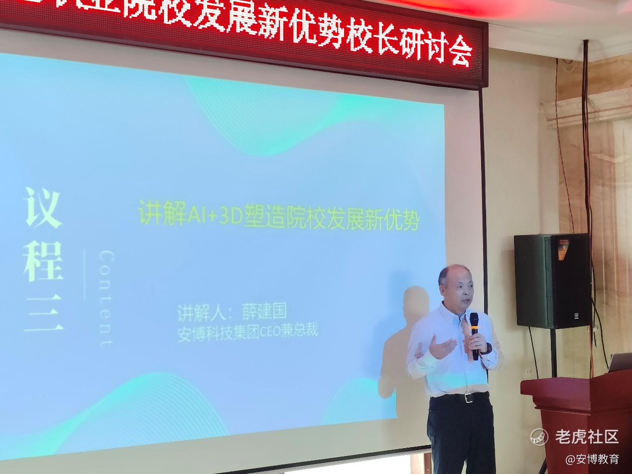 安博科技集团总裁、CEO薛建国在《AI+3D塑造院校发展新优势》的专题报告中提出,院校需要本着从“需求导向、问题导向、变革导向”的原则进行数字化转型,更需要与企业携手,以最新科技共同构建数字化教育环境。他表示,AI大潮席卷教育行业,必将带来教学模式的创新、学习范式的转型和治理能力的优化,教育高质量发展大幕已经拉开,教育新生态也必将重构。