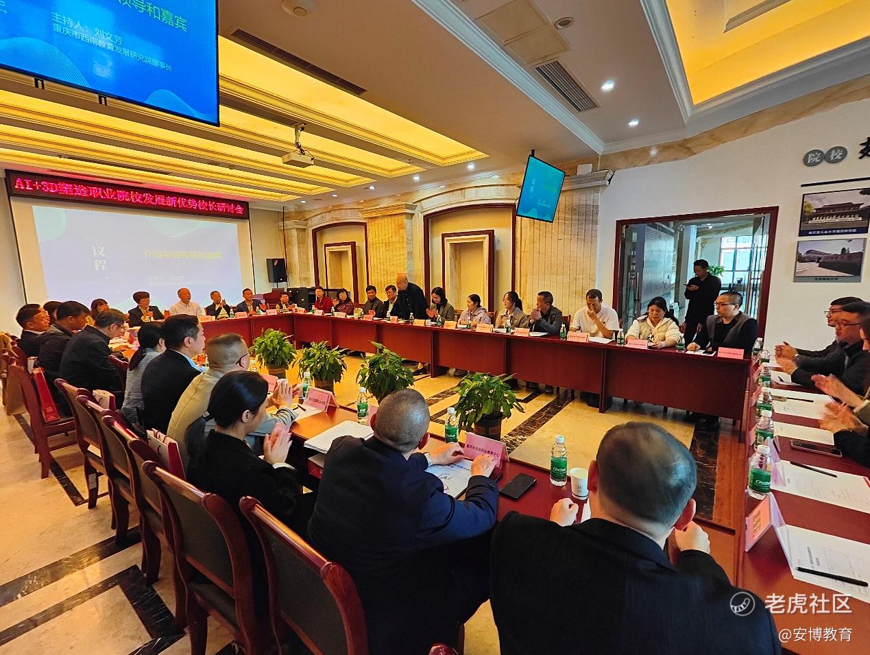 近日,由西南教育发展研究院、安博科技集团以及重庆华欣鼎数字科技有限公司联合组织举办的“AI人工智能赋能职业院校创新发展研讨会”在重庆成功召开。来自内蒙、山东和重庆等地的本科院校、中高职院校以及安博教育科技集团、重庆市西南教育发展研究院的领导和专家出席了研讨会。