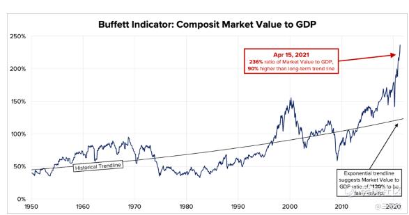 理论上,用任何单一指标预测股市泡沫破灭都不靠谱。股市是个复杂的系统,它的涨跌不是单一变量决定的。巴菲特指标的缺陷在于,它既掩盖了美股板块严重分化的事实,又忽视了货币政策的重要作用,所以显得'跟不上时代'。。