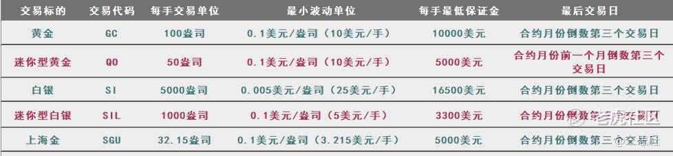 下文梳理了对应交易工具的基本参数,供大家参考: