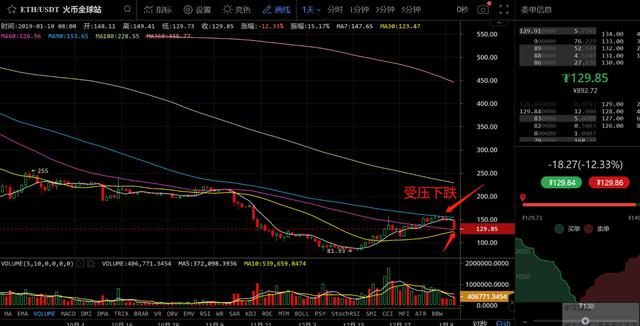 我们前面判断后续的下跌,是从ETH的走势来看的,那么现在我们还是来看看ETH的K线走势图: