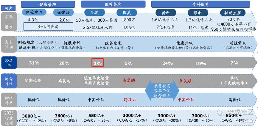 根据国盛证券的研报,当前毛发行业的渗透率仅为1%左右,对比消费医疗赛道里的其他行业平均渗透率而言,还有不小的挖掘空间。