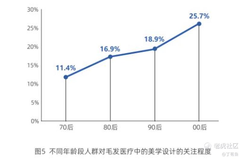 中科院蓝皮书中提到,相较于年长群体,年轻的群体更在乎毛发美学,近26%的“00后”消费者和18.9%的90后消费者更关心毛发医疗中的美学设计。