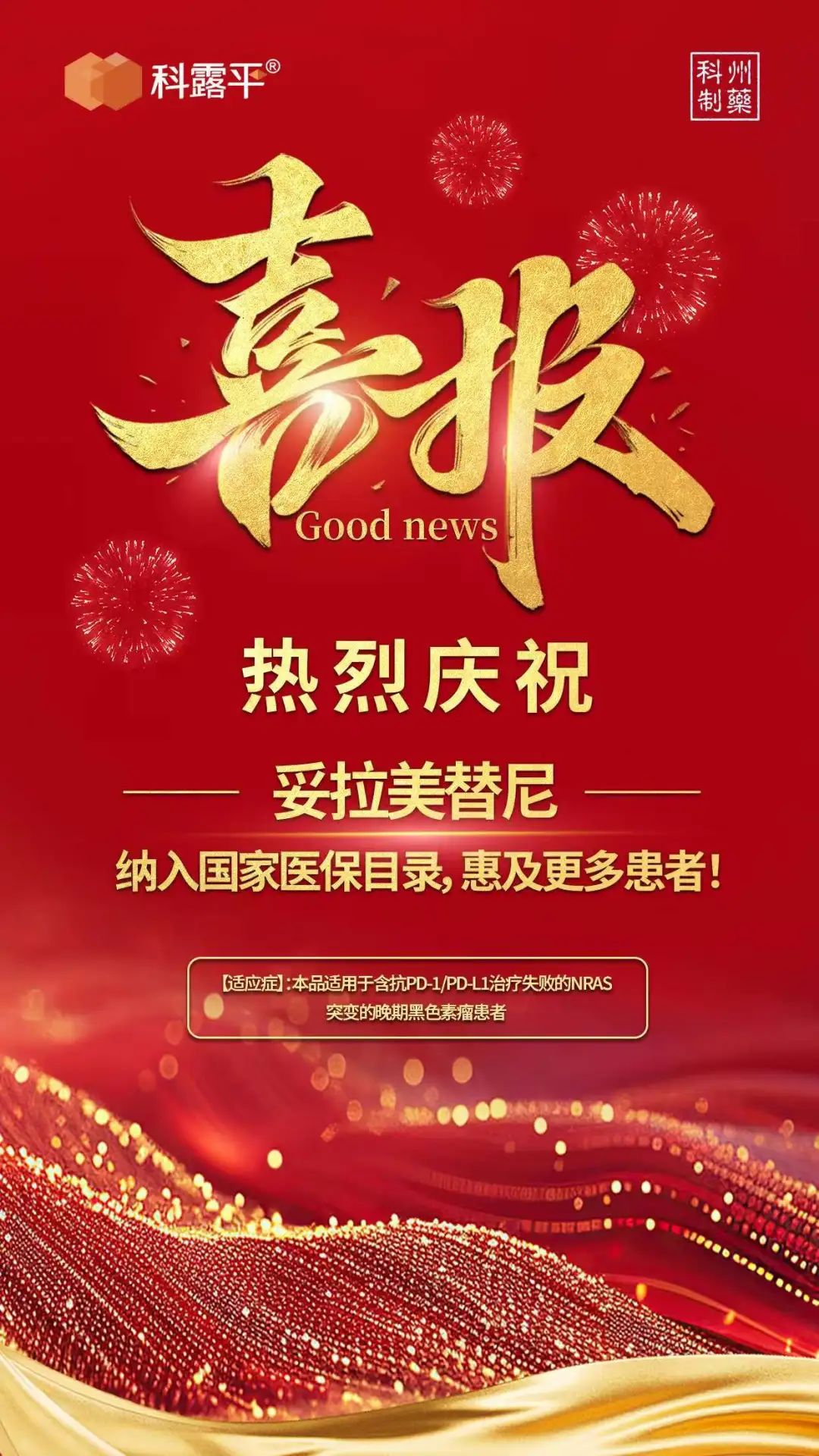 据国家医保局2024年11月28日公告,夏尔巴投资企业科州制药研发的全球首款针对NRAS基因突变黑色素瘤的1类创新药靶向药科露平®(妥拉美替尼)正式纳入新版国家医保目录。