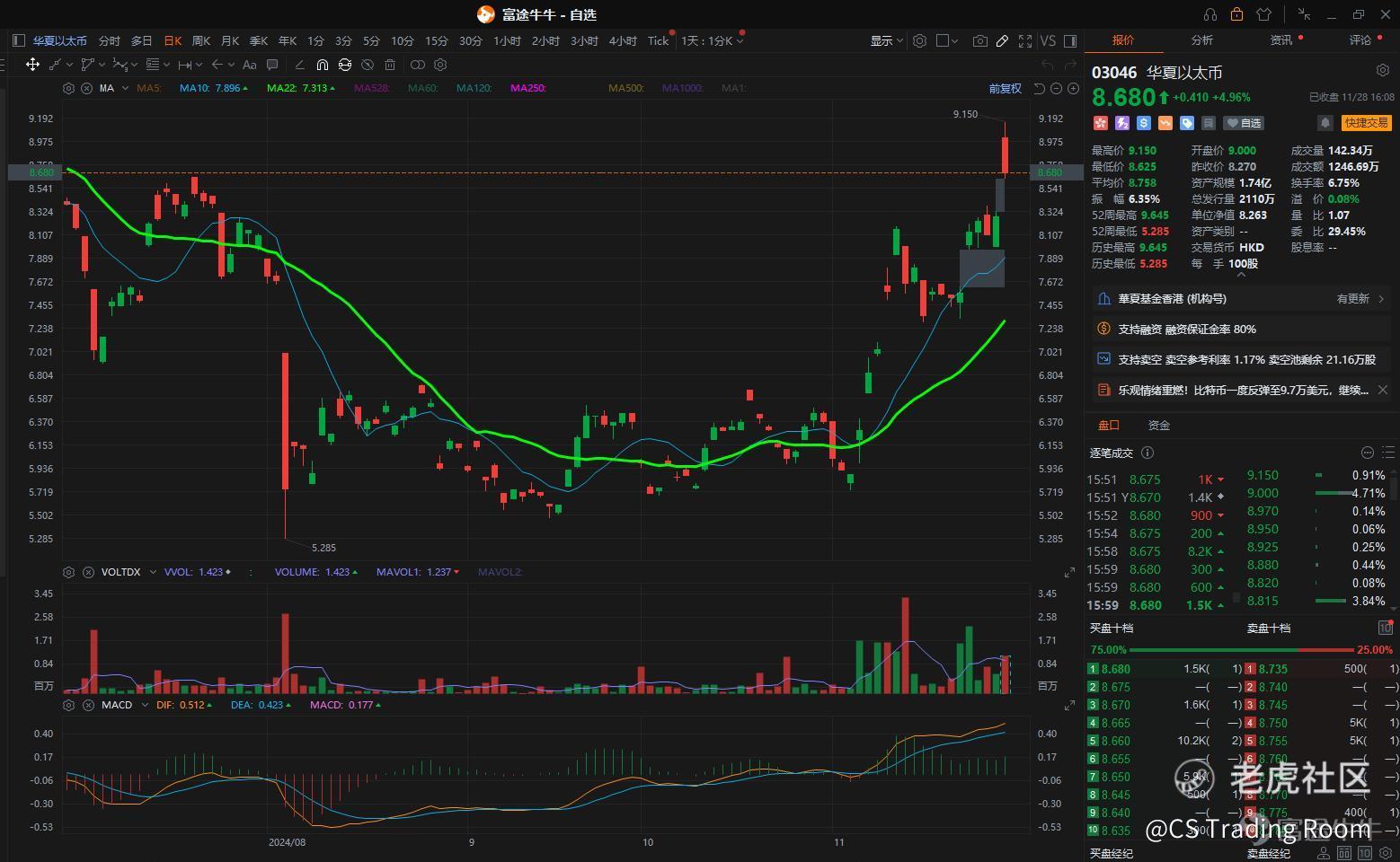加密货币ETF逆势走强, $华夏以太币 (03046.HK)$ 涨近5%, $博时比特币 (03008.HK)$ 、 $华夏比特币 (03042.HK)$ 、 $华夏以太币 (03046.HK)$ 、 $嘉实比特币 (03439.HK)$ 涨超1%。部分加密货币概念股也出现上涨。 $蓝港互动 (08267.HK)$ 、 $博雅互动 (00434.HK)$ 分别上涨6.56%、3.86%。