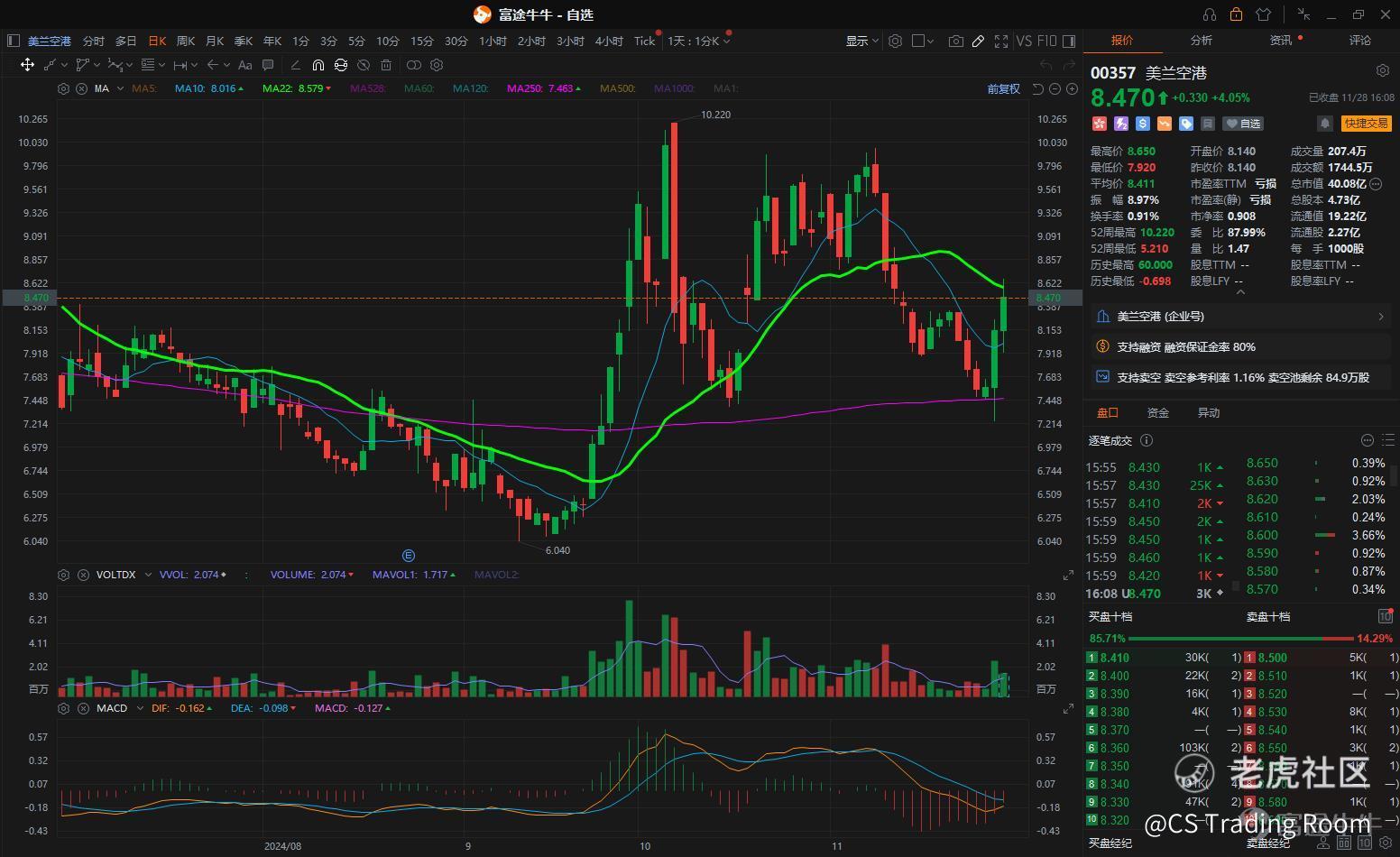 航空股逆势上涨, $美兰空港 (00357.HK)$ 涨超4%, $中国国航 (00753.HK)$ 涨近2%, $中国东方航空股份 (00670.HK)$ 涨近3%, $国泰航空 (00293.HK)$ 涨近1%。