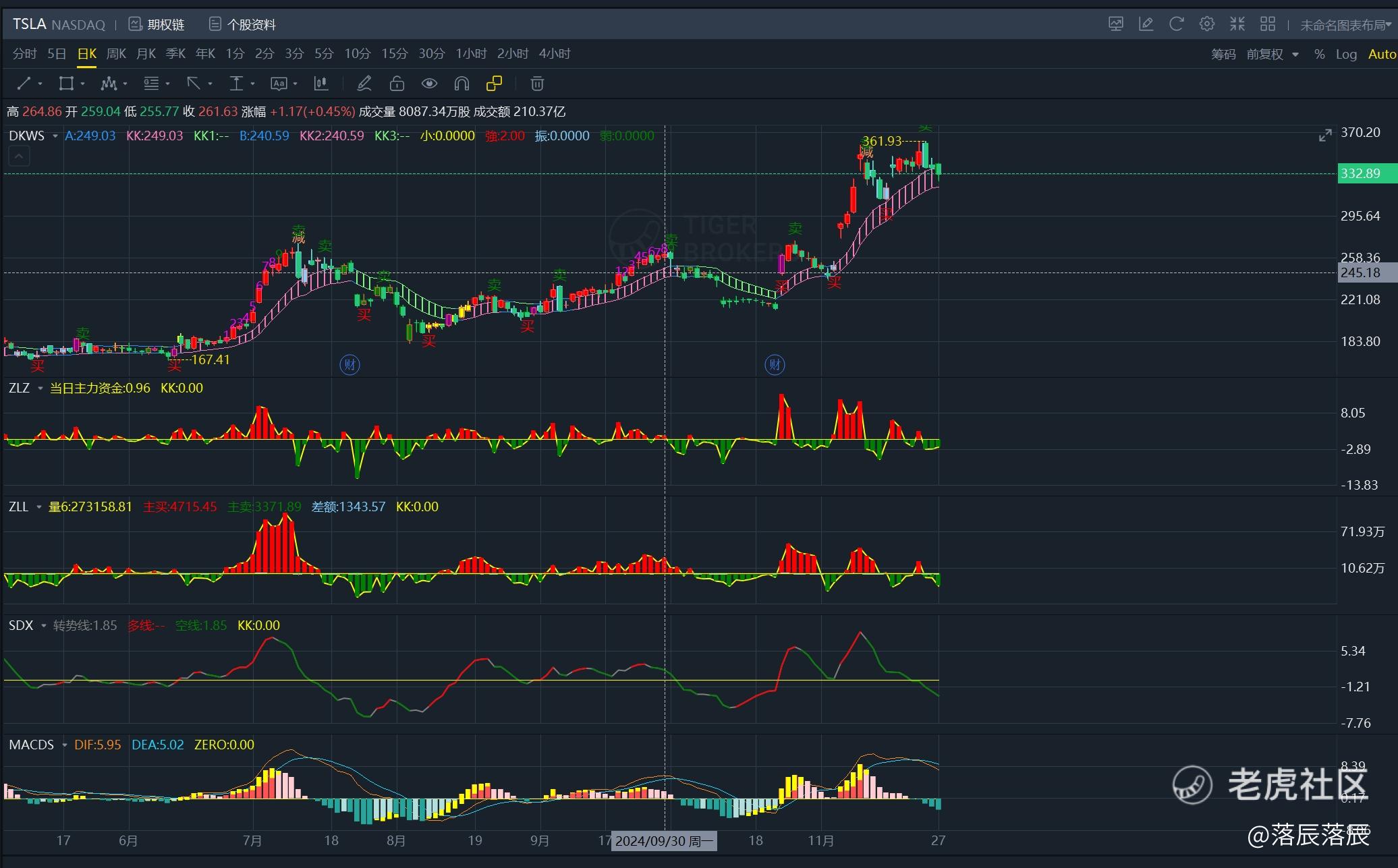 由于本人从富途转仓老虎,所以将富途自定义的指标都移植过来了,上面为富途跟老虎主图自定义指标对比图,我个人还是喜欢富途界面,整体感觉更柔和一些,可能是用习惯了的原因。前面有发文说老虎不支持手机端自定义指标,我看官方这面也回复了,希望工程师那面努努力,早日支持吧,让大家手机上都能用上自定义指标[开心] [开心] $特斯拉(TSLA)$