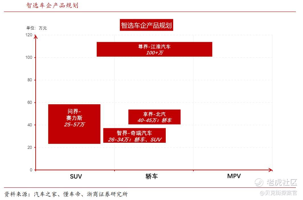 在赛力斯强劲的市场表现下,江淮尊界S800则对标迈巴赫、劳斯莱斯等超豪华品牌,瞄准高端市场人群,有望通过智能化实现差异化竞争。参考问界汽车在50万级市场通过电动车、华为智能驾驶等技术实现的成功,江淮尊界有望采用类似的方式实现错位竞争。