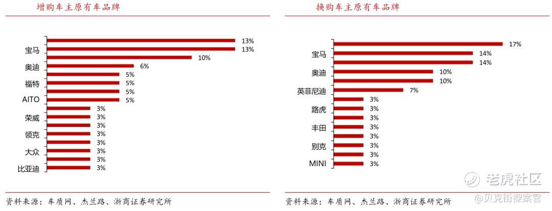 根据知名调研机构杰兰路公布的首批调研问界M9车主的结果,购买问界M9的车主主要为一线城市已婚中年男性,年龄在37.3岁,家庭税后年收入均值92万元。其中,48%的车主为换购,35%为增购,仅有17%的车主为个人首次购买汽车。被替换车型主要为奔驰、宝马等豪华品牌,换购车主原车为豪华品牌的,占比为59%。