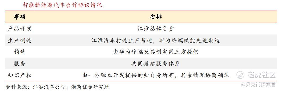 2023年12月,安徽江淮汽车集团股份有限公司与华为终端有限公司共同签署《智能新能源汽车合作协议》,公开了双方的合作细节。双方将发挥华为的技术与渠道优势,以及江淮的制造优势,共同打造智能汽车。双方合作推出的尊界相关车型,将基于江淮X6平台,结合华为智能驾驶与动力技术,预计年产量3.5万台。