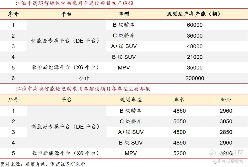 2024年4月,安徽省生态环境厅受理公示了《江淮年产20万辆中高端智能纯电动乘用车建设项目环境影响报告书》,江淮新工厂将投资约40亿元,用于全新的新能源专属DE平台,以及和华为智能技术赋能的豪华新能源X6平台。2024年10月,公司发布定增预案,计划投资587,459万元用于高端智能电动平台开发项目。