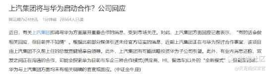 2024年11月27日,市场再次有消息称,曾经号称“要把灵魂掌握在自己手中”的上汽集团也将和华为合作,但上汽方面回应称“并不知情”。
