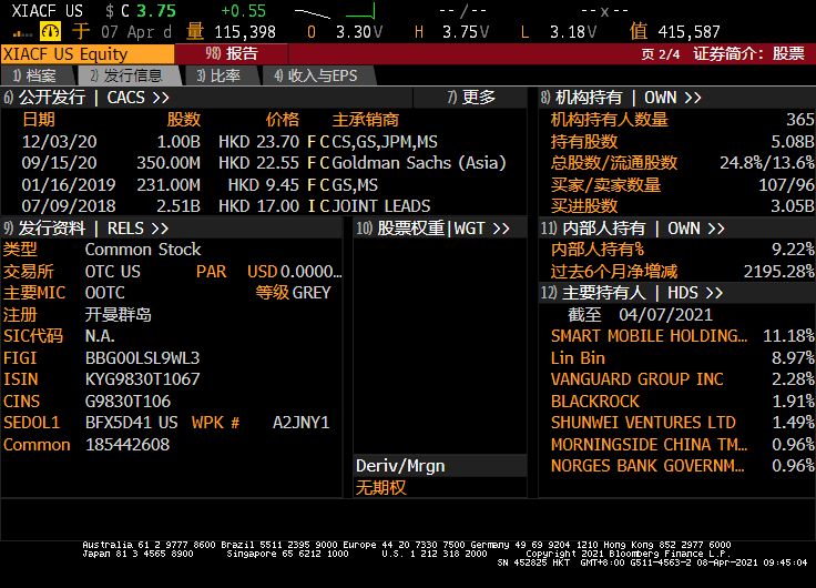 XIACY US是小米集团在美国上市的ADR,根据军事清单要求,美国投资者在3月15日起不允许再买入小米股票,因此交易所宣布在3月12日对XIACY摘牌(当时还没有获得临时禁令)。XIACY在摘牌前即转入了粉单市场(Pink),即场外交易(OTC Market),粉单股票只受到有限的监管和信息披露要求;