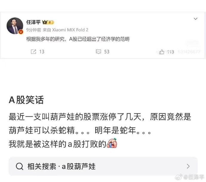 年末了,A股一年一度的生肖股炒作又开始了,昨天蛇年概念股集体活跃:公司名含“蛇”“蟒”的、董事长属相属蛇的、名字与”snake”相近的、雷峰塔传说等等,A股这一波增量资金,聚集了大量游资和抖音来的散户[吃瓜]