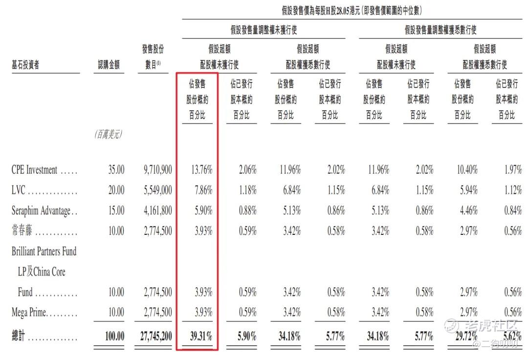 5、从流通性来看,公司本次发行7058万股,预计募资20亿港元,基石投资认购7.78亿港元(1亿美元),剩下13亿全部为流通盘者,这个抛压还是不少的。