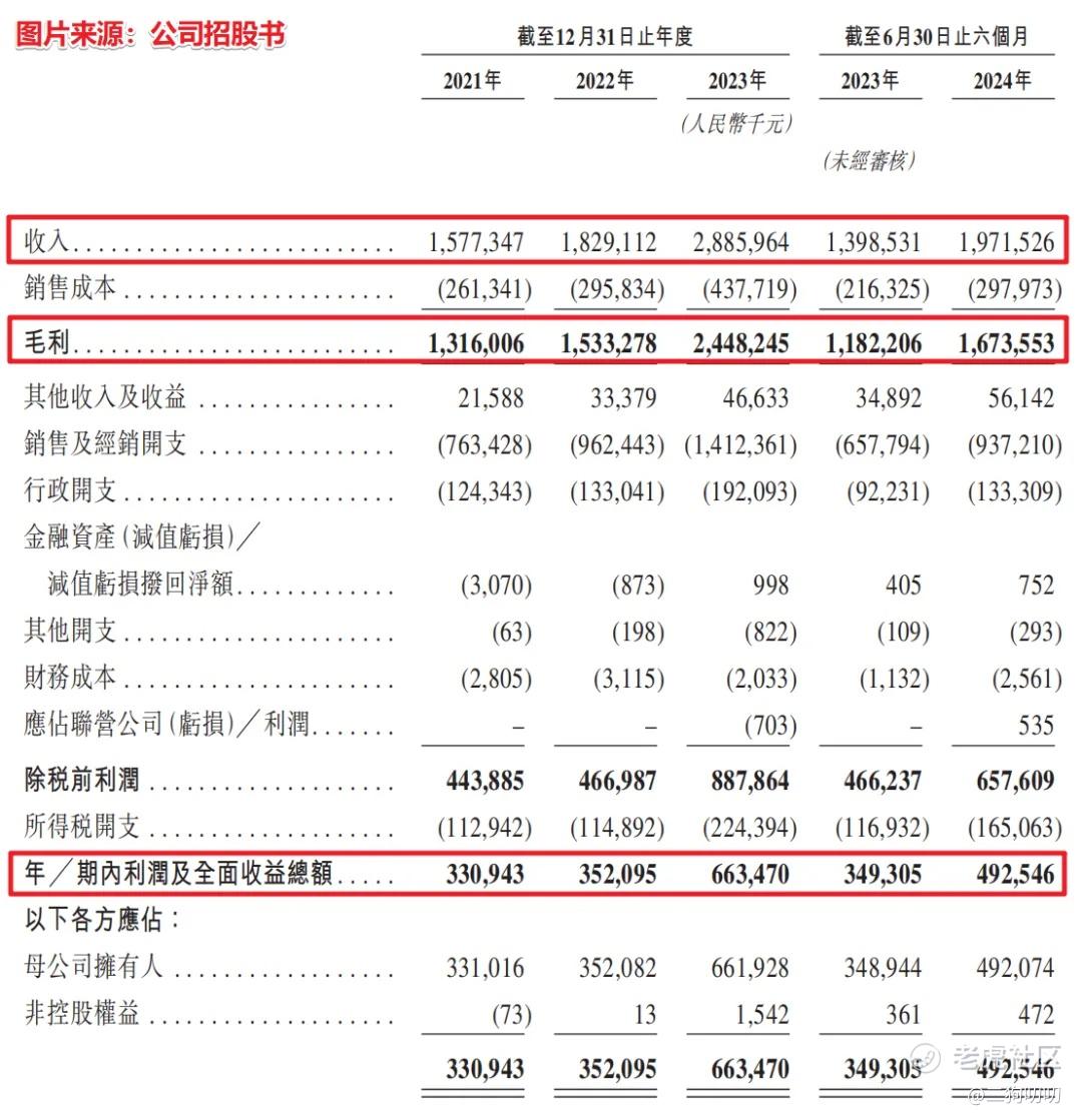 4、从估值来看,目前公司估值123-140亿港币,按照2023年财务计算,公司市盈率为18.5-21.1倍,A股上市的珀莱雅市盈率25倍,港股上市的 $上美股份(02145)$ 市盈率16倍, $巨子生物(02367)$ 是26倍,作为港股美妆第一股,这个价格还算是合理。